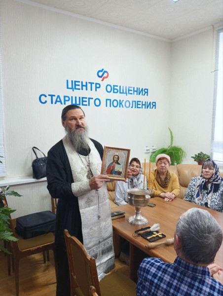 В Центре общения старшего поколения «Серебряный возраст» прошло замечательное насыщенное мероприятие. Настоятель храма св. вмч. Георгия Победоносца п. Вурнары протоиерей Александр Панзин освятил помещение, все участники получили благословление батюшки.