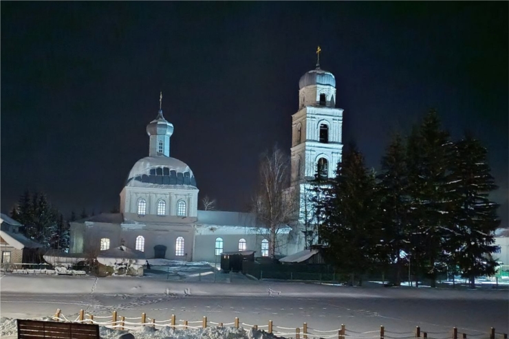 На кануне праздника Крещения Господня в храме Воздвижения Креста Господня в селе Красные Четаи совершено всенощное бдение, которое завершилось традиционным крестным ходом к месту купания, расположенному на пруду возле храма.