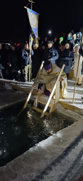 Настоятель храма протоиерей Максим Зарубин совершил чин Великого освящения воды в проруби, открыв тем самым возможность окунуться в ледяную воду.