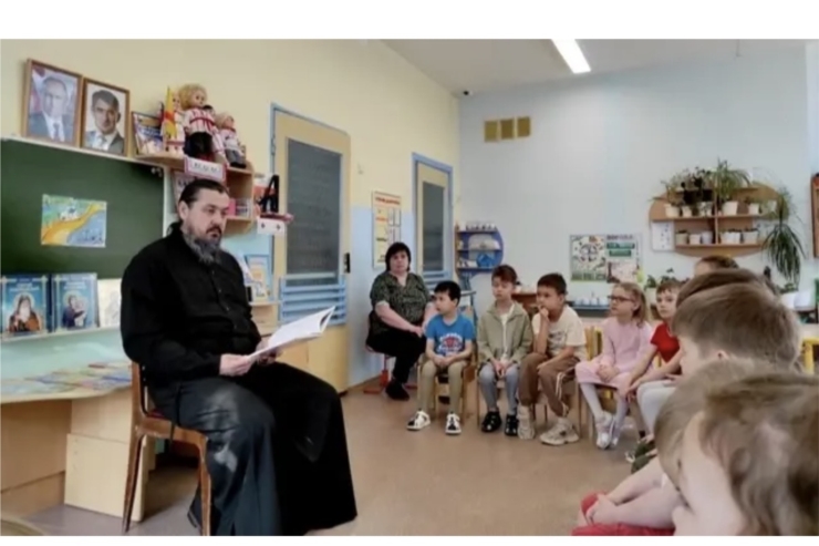 В предверии Дня православной книги воспитанники старшей группы детского сада № 176 города Чебоксары встретились с протодиаконом Геннадием Малышкиным, клириком Покровско-Татианинского собора.