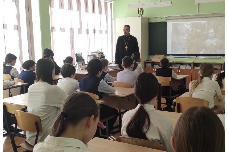 протоиерей Максим Курленко, рассказал школьникам о святом благоверном князе Александре Невском.