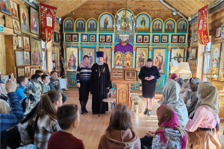Отец Пётр рассказал детям о храме, о поведении, присущем доброму человеку, о любви и доброжелательном отношении к людям, а также о православных праздниках — Вербном Воскресении и Пасхе. Батюшка благословил детей, призвал их быть послушными и хорошо учиться, а затем угостил конфетами. Татьяна Алексеевна объяснила детям правила безопасности на интернет-сайтах. Она подробно рассказала ученикам, как действовать, если звонят мошенники или незнакомые люди.