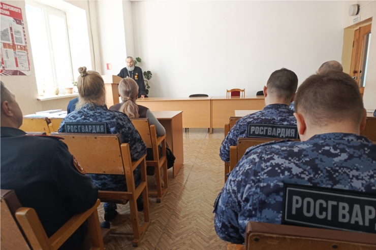 25 марта 2026 года председатель Епархиального отдела по взаимодействию с вооруженными силами и правоохранительными учреждениями протоиерей Петр Федоров, провел лекцию для сотрудников Росгвардии, посвященную защите традиционных устоев.