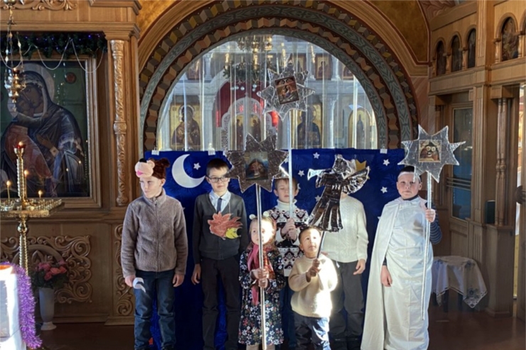 9 января 2022 года после Божественной литургии в Храме Владимирской иконы Божией Матери с.Анат-Киняры воспитанники Воскресной школы поздравили прихожан с Рождеством Христовым.