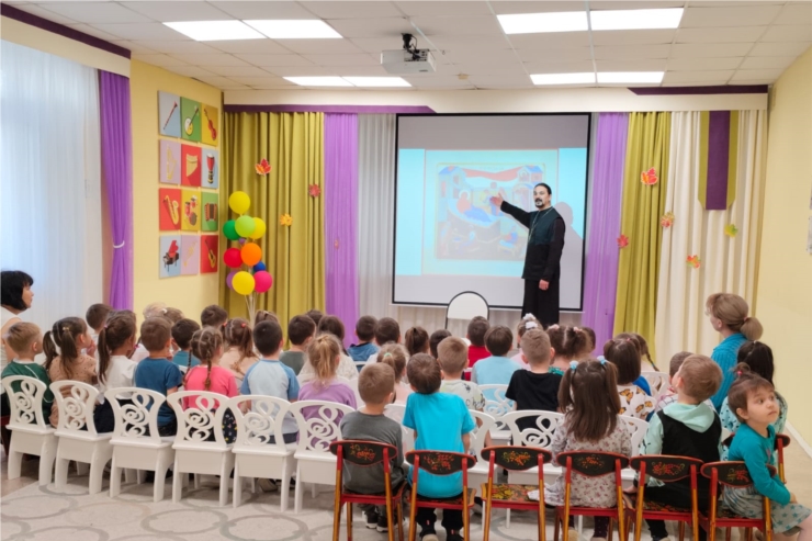 В рамках сотрудничества с храмом святилеля Николая Чудотворца г.Чебоксары в детском саду №118 прошла встреча дошколят с настоятелем храма иерем Святославом Хамзиным.