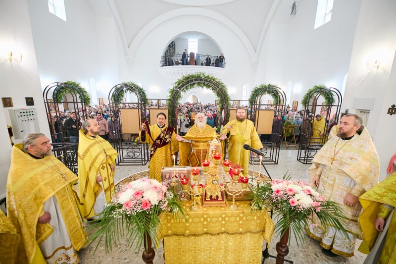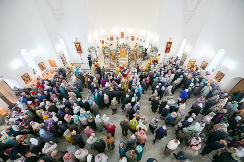 На праздничное богослужение собралось множество верующих, большинство из них причастились Святых Христовых Таин.