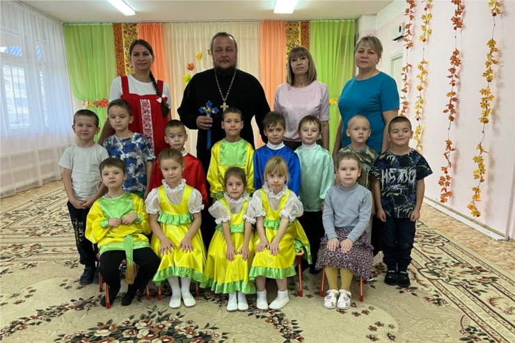 В стенах детского сада "Радуга" города Мариинский Посад произошло особенное событие. В рамках плодотворного сотрудничества с православным приходом храма в честь иконы Божией Матери «Казанская», в гости к детям заглянул настоятель храма, протоиерей Георгий Черашкин.