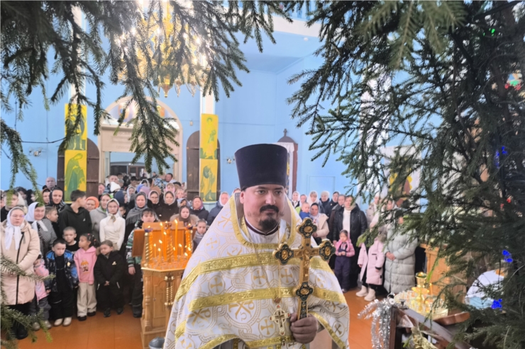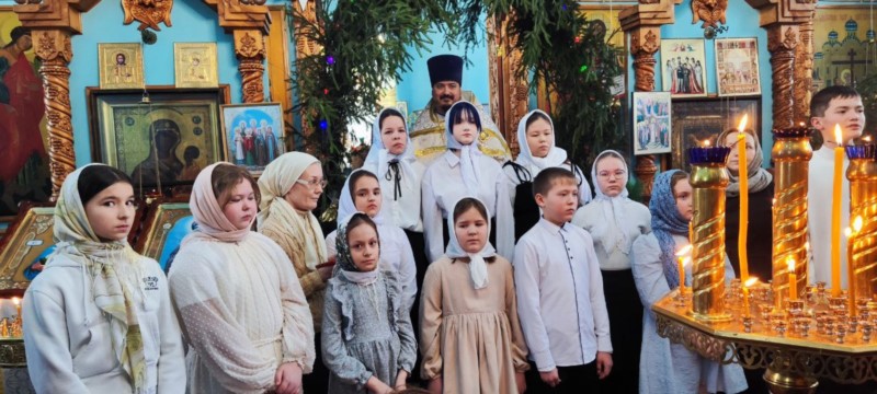 По окончании богослужения были пропеты тропарь, кондак и величание праздника и юными прихожанами было прославление родившегося Господа Нашего Иисуса Христа концертом, где исполнялись колядки и стихи.