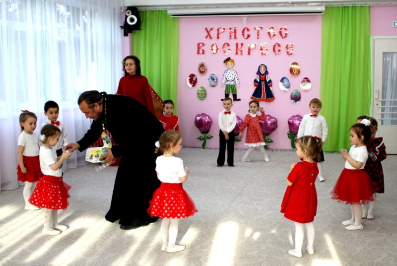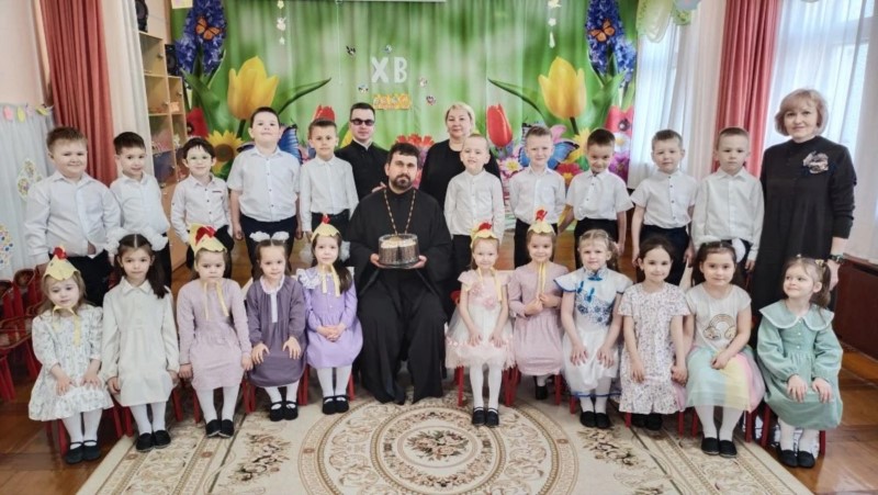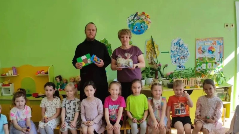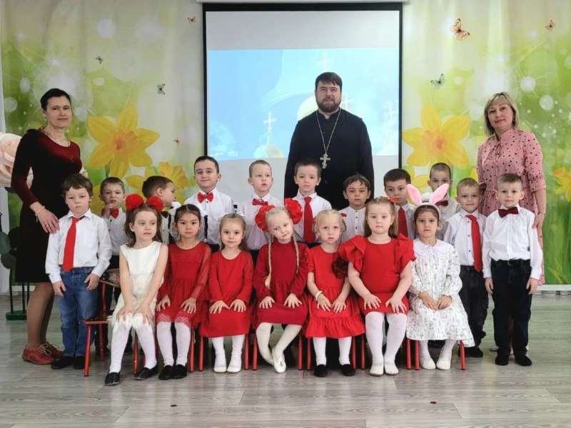 В старшей группе «Подснежник» детского сада №44 "Поляночка" города Новочебоксарска состоялась встреча с клириком собора святого Князя Владимира иереем Дионисием Енцовым, приуроченная к празднованию Светлой седмицы Пасхи.
