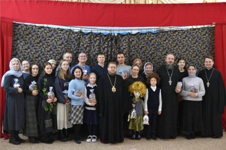 Епископ Паисий обратился к собравшимся с заключительным словом. Владыка поблагодарил творческую группу за постановку. Всем участникам спектакля он вручил сладкие рождественские подарки.