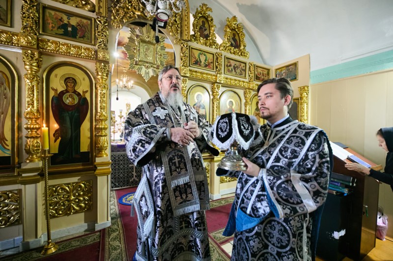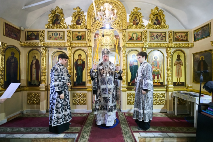 Богослужебные песнопения исполнили архиерейский хор собора под управлением Ксении Ильинлй и клиросный хор храма под управлением Антонины Пегасовой.