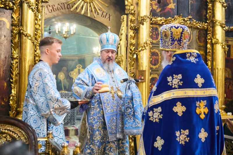 Его Высокопреосвященству сослужили ключарь кафедрального собора протоиерей Вениамин Пегасов и клирик храма иерей Александр Михайлов. Диаконский чин возглавил диакон Евгений Поляков.
