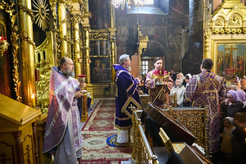 Богослужебные песнопения исполнили архиерейский хор под управлением Оксаны Ильиной и клиросный хор регент Антонина Пегасова.