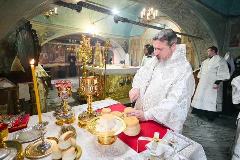 По окончании утрени Владыка митрополит в сослужении клириков собора иерея Иоанна Спрнсян и иерея Александра Михайлова совершил вечерню с чтением паримий и Божественную литургию святителя Василия Великого.
