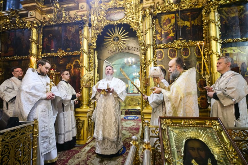 Высокопреосвященнейшему владыке сослужили ключарь кафедрального собора Введения во храм Пресвятой Богородицы протоиерей Вениамин Пегасов и клирики собора председатель Епархиального церковного суда, председатель Епархиальной комиссии по брачным вопросам протоиерей Алексей Кошкин, иерей Иоанн Спринсян, руководитель воскресной школы при кафедральном соборе иерей Максим Подшибякин и иерей Александр Михайлов. Диаконский чин возглавил диакон Евгений Поляков.