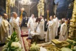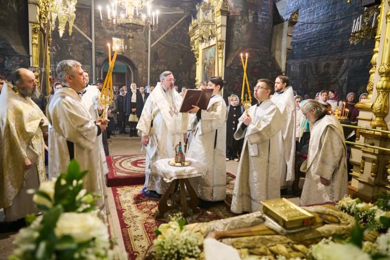 По заамвонной молитве было совершено освящение хлеба и вина, и вознесена молитва о мире на Святой Земле, совершаемая по традиции ежегодно в Великую субботу.