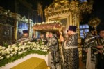 По окончании пения великого славословия, с пением погребального «Святый Боже», состоялся крестный ход с Плащаницей вокруг храма.