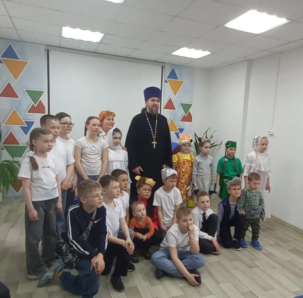 Настоятель храма иерей Илия Лебедев, гости мероприятия увидели театрализованное представление на темы праздника Пасхи и о нравственном подвиге души.