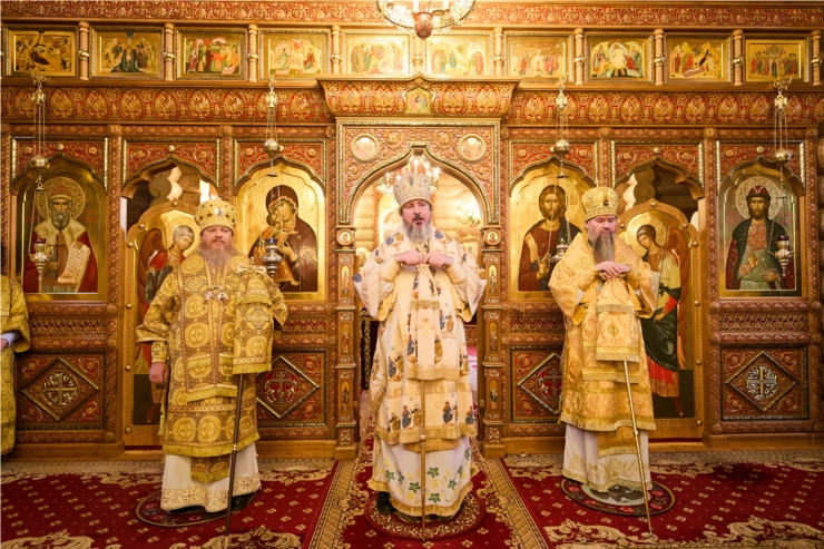На сугубой ектении были произнесены особые прошения о Святой Руси, по сугубой ектении Владыка совершил молитву.