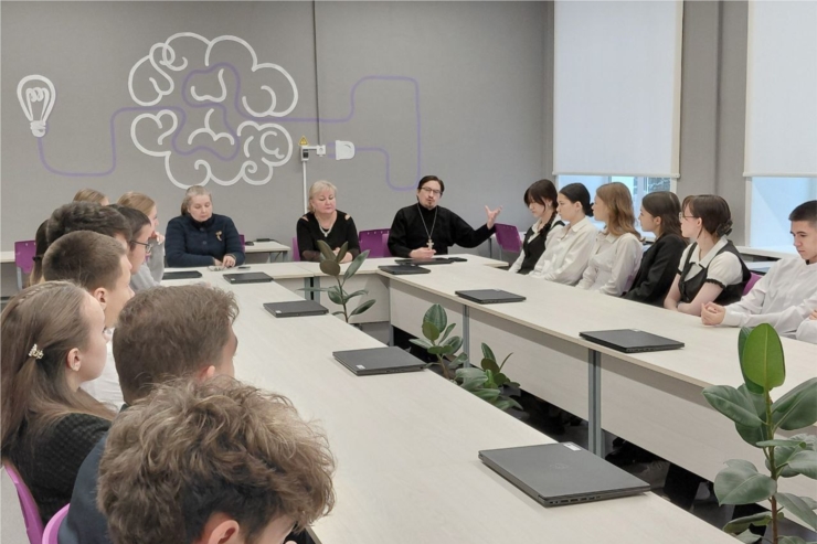 В чебоксарской школе №6 состоялась встреча старшеклассников с клириком Спасо-Преображенского женского монастыря протоиереем Сергием Пушковым.