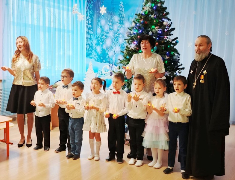 Встреча прошла в тёплой, радостной атмосфере. Дети, воодушевленные общением, не только с большим вниманием слушали батюшку, но и сами украсили праздник песнями, стихами и танцами.