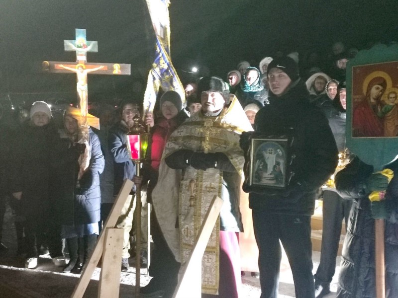 На кануне праздника Крещения Господня в храме Воздвижения Креста Господня в селе Красные Четаи совершено всенощное бдение, которое завершилось традиционным крестным ходом к месту купания, расположенному на пруду возле храма.