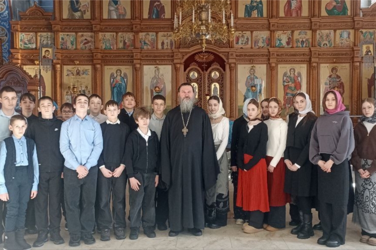 Встреча с учащимися седьмого класса была посвящена глубокому и осмысленному разговору об истории, традициях и главном богословском смысле этого важнейшего христианского торжества, празднику Сретения Господня.