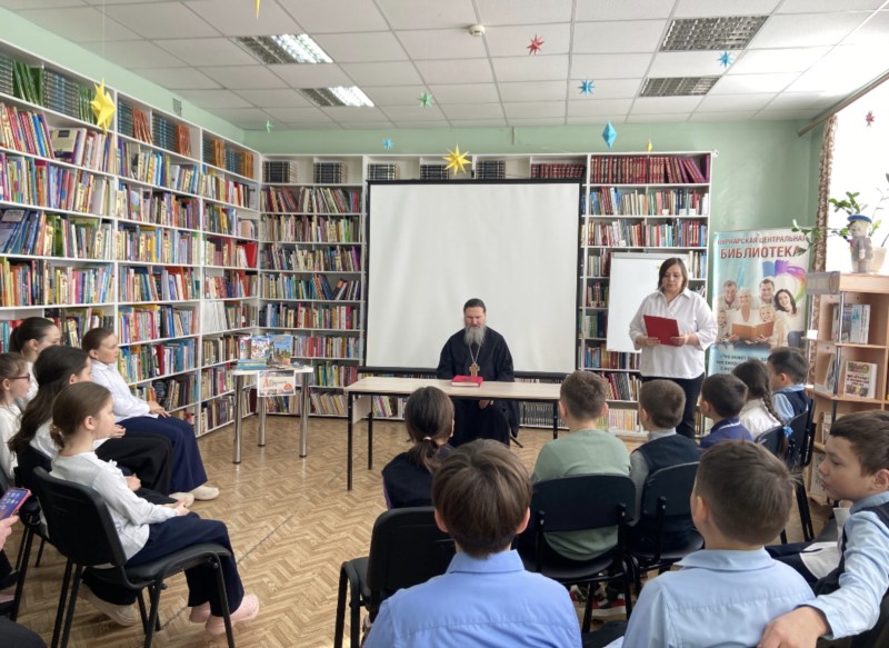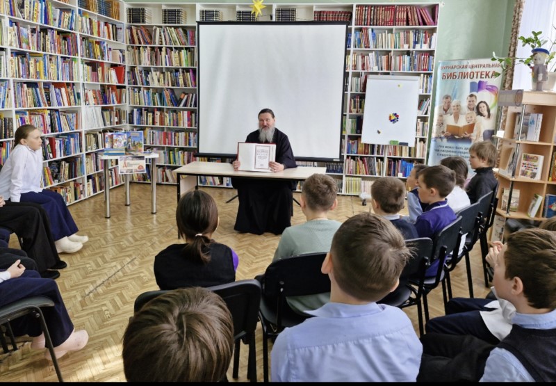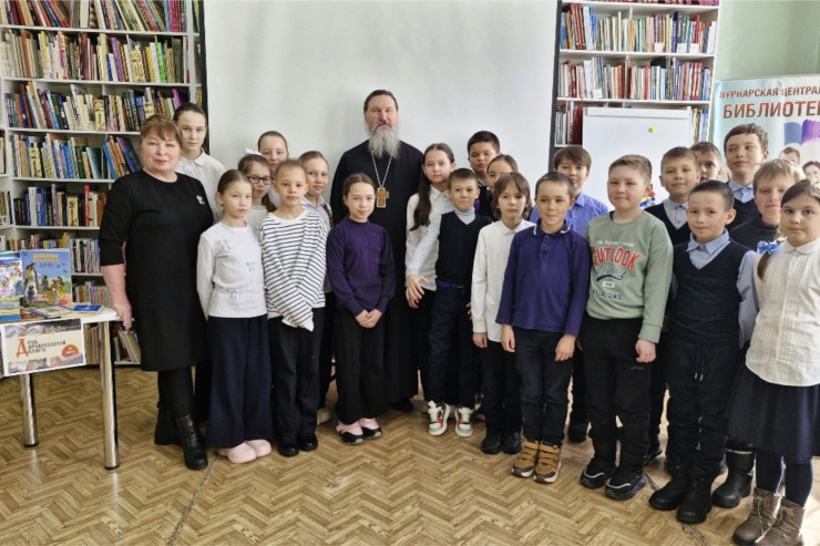 К этому дню в отделе детской литературы прошёл час духовной книги «Православная книга — путь к добру и миру» с учениками 4 класса МБОУ "Вурнарская СОШ 1 им. И. Н. Никифорова". Гостем встречи стал настоятель Вурнарского храма святого великомученика Георгия Победоносца протоиерей Александр Панзин.