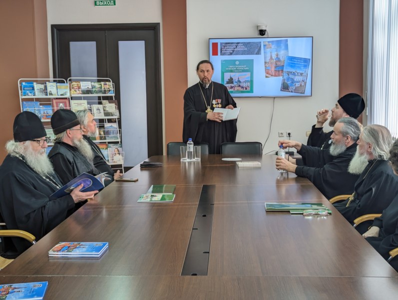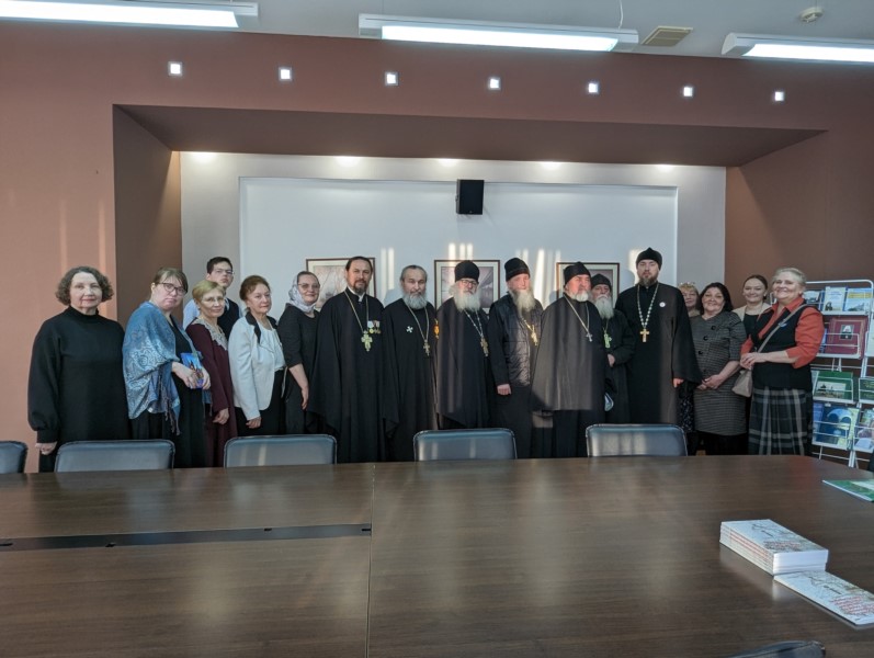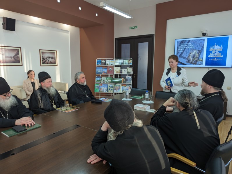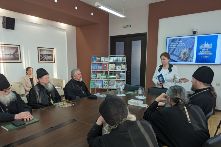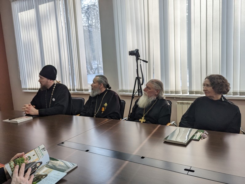 Составитель книги «Крестный путь владыки Вениамина» Зоя Никодимовна Токарева показала участникам встречи пробный экземпляр издания, рассказала о нем. Издание этой книги одобрено Издательским советом Русской Православной Церкви. В настоящее время тираж запущен в печать, презентация книги состоится в мае 2026 года в рамках X Межрегиональных Свято-Гурьевских образовательных чтений.