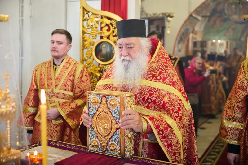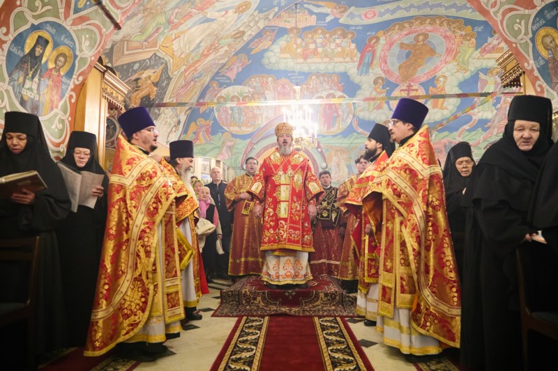 Его Высокопреосвященству сослужили: игумен Виталий (Гришин); секретарь Чебоксарской епархии благочинный городского округа настоятель храма Новомучеников и исповедников Российских г. Чебоксары иеромонах Иов (Маркелов),  настоятель храма праведного Иоанна Кронштадтского г. Чебоксары протоиерей Николай Медведев , служащие клирики обители протоиерей Сергий Пушков и иерей Александр Коробков; диаконы Евгений Поляков, Михаил Смирнов и Николай Трифимов.