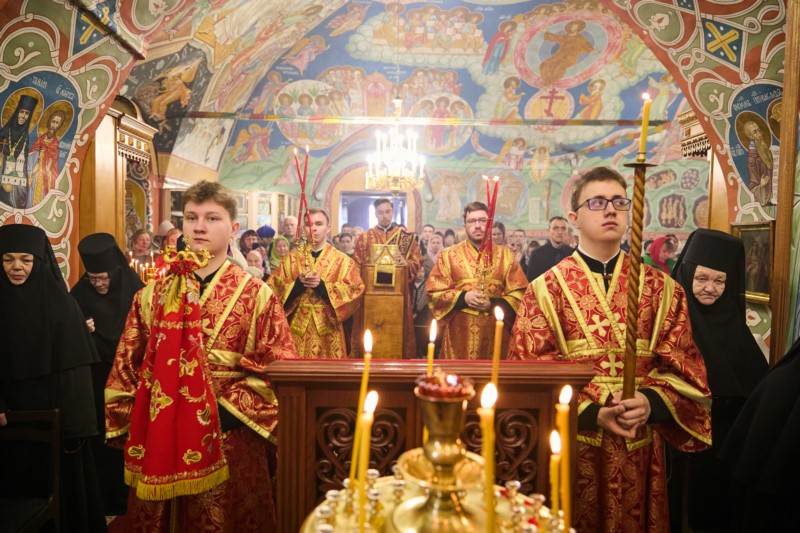 Пели монастырский хор под управлением монахини Гавриилы (Беловой) и хор воспитаниц Воскресной школы обители руководитель Наталия Валерьевна Нарядова.