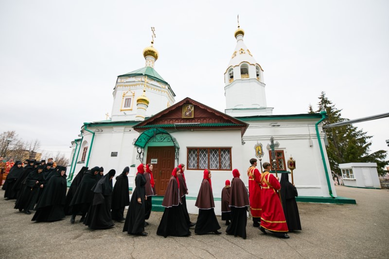 Божественная литургия с Пасхальным крестным ходом в Неделю святых жен мироносиц в Спасо-Преображенском женском монастыре г. Чебоксары