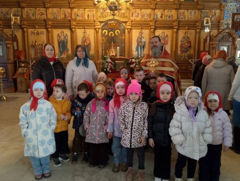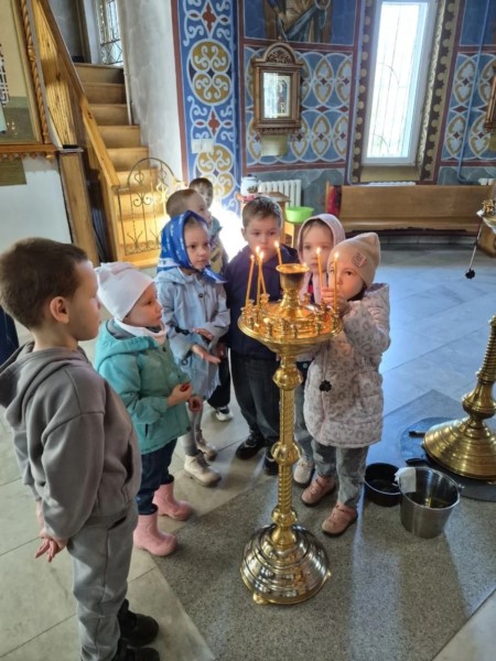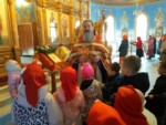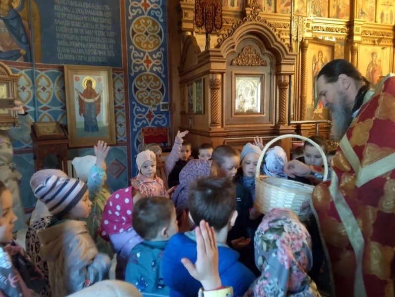 Пришли маленькие прихожане - воспитанники детских садов поселка, чтобы прославить Воскресшего Христа и похристосоваться с батюшкой.
