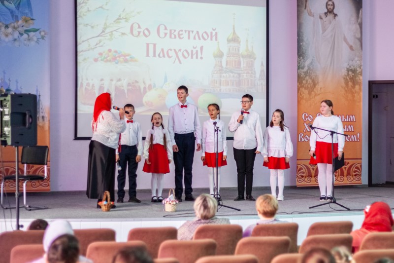 Праздник завершился общим исполнением песни «Христос воскрес» и раздачей подарков детям. Вела фестиваль Регина Чишкина.