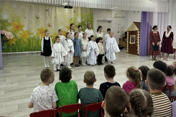 Гости подготовили для малышей настоящий пасхальный праздник. Центральным событием стала театральная постановка «Пасхальная ночь» — трогательное представление, наполненное светом и радостью Светлого Христова Воскресения. Кроме того, в программе прозвучали праздничные песни и стихотворения в исполнении школьников.Благодаря искренней игре юных актёров и душевной атмосфере мероприятие подарило незабываемые впечатления и детям, и взрослым.Такие встречи играют важную роль в духовно-нравственном воспитании подрастающего поколения. Они не только знакомят детей с православными традициями, но и учат добру, милосердию и радости совместного творчества. Надеемся, что дружба между воскресной школой и детским садом продолжится и в будущем.