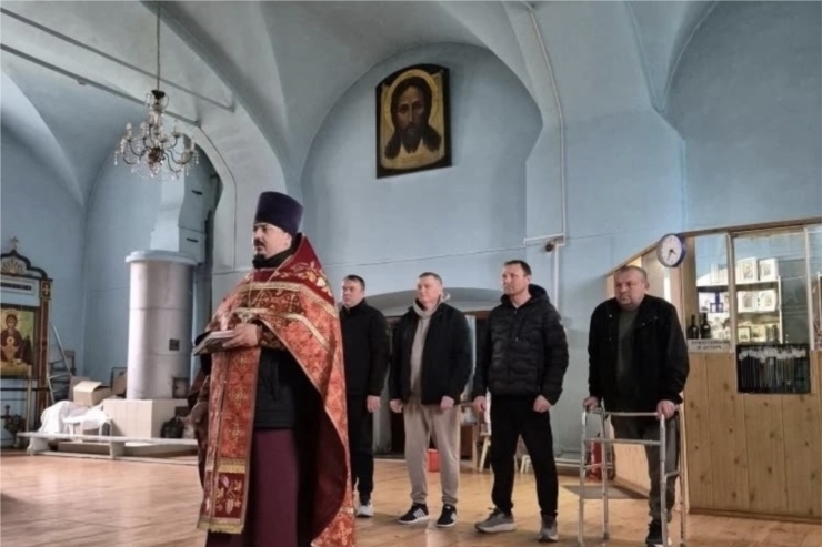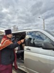 Перед отправкой груза, настоятель храма Воздвижения Креста Господня села Красные Четаи протоиерей Максим Зарубин совершил молебное пение и покропив освященной водой, благословил молодых волонтёров, которые на двух машинах отвезут груз для наших земляков, находящихся на позициях в ДНР.