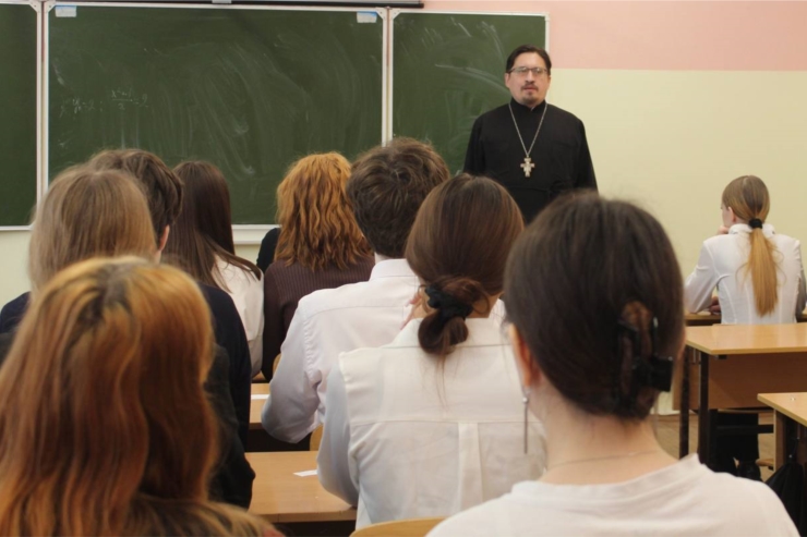14 октября 2025 года в столичной школе №6 состоялась встреча девятиклассников с клириком Спасо-Преображенского женского монастыря города Чебоксары, кандидатом богословия, протоиереем Сергием Пушковым.